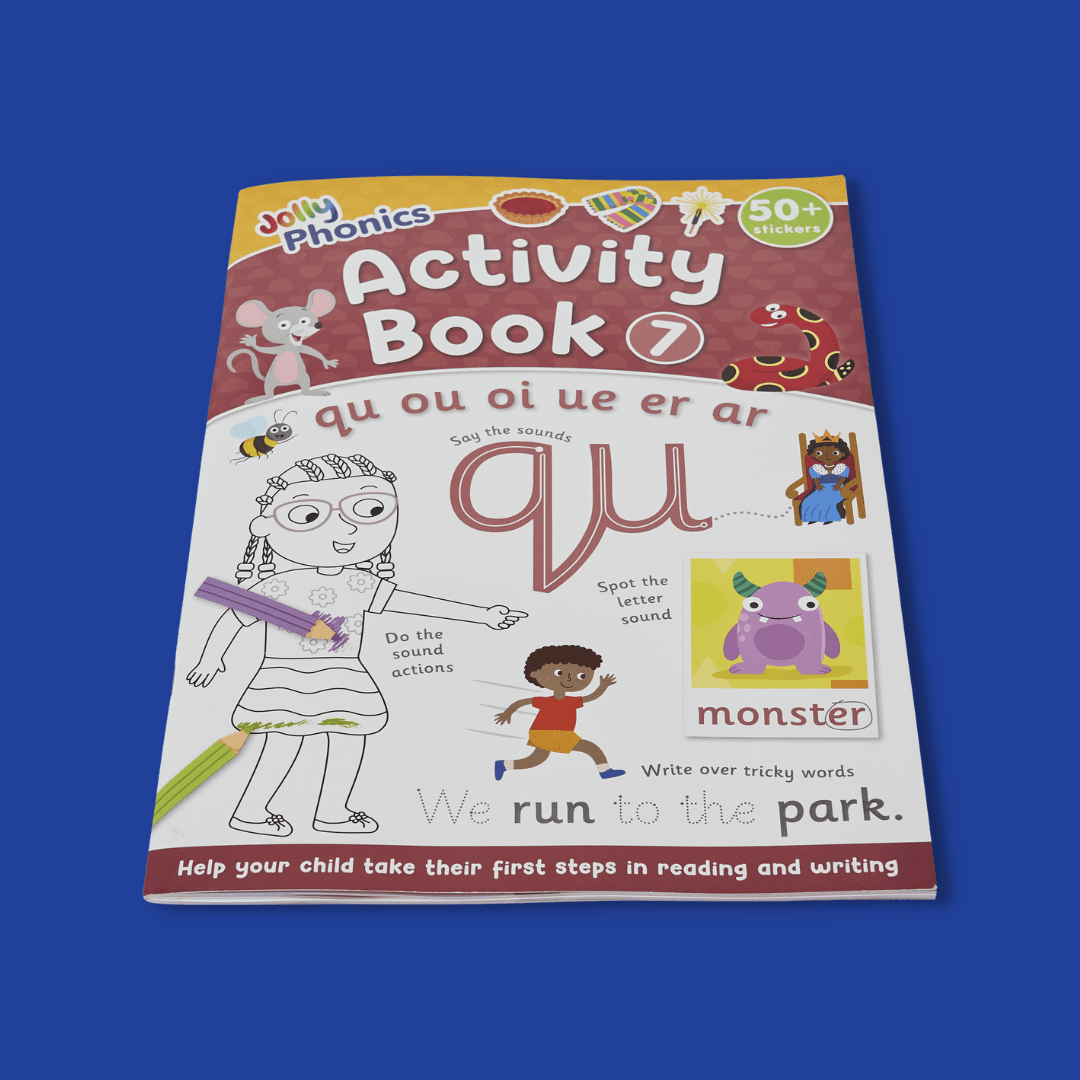 Jolly Phonics uses a systematic, synthetic phonics approach: children learn the main letter sounds, blend them for reading and segment them for spelling. The Activity Books give children extra, low-pressure practice with those sounds in a format that feels like fun rather than formal lessons. By the time children reach the end of Activity Book 7, they have met all the main Jolly Phonics letter sounds, practised blending and segmenting them in lots of different words, and started to read and write simple sentences – a natural bridge into Jolly Phonics Pupil Books, decodable readers and the wider Jolly Literacy range.
